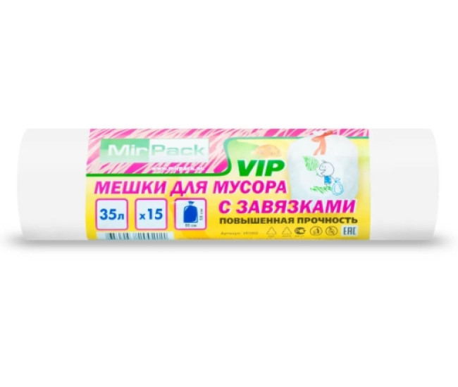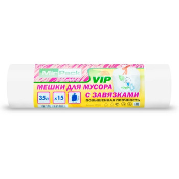 | Наименование | Мешки д/мусора MIRPACK 35л/15шт "VIP" 18мкм с завяз. белые *25 0211 |