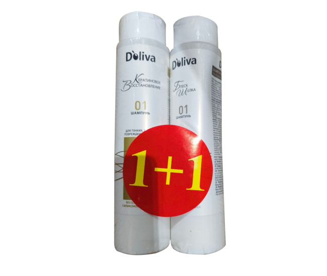 | Наименование | Шампунь "DOLIVA " 400мл Кератин/восстан+Шампунь Блеск шелка 400мл спайка 1+1! 5993 *(, 01.06.2027)* |
