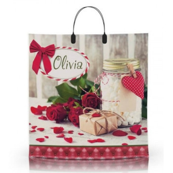 Пакет с пластиковой ручкой 40*40 Розовые пионы (прод.по 10)*100