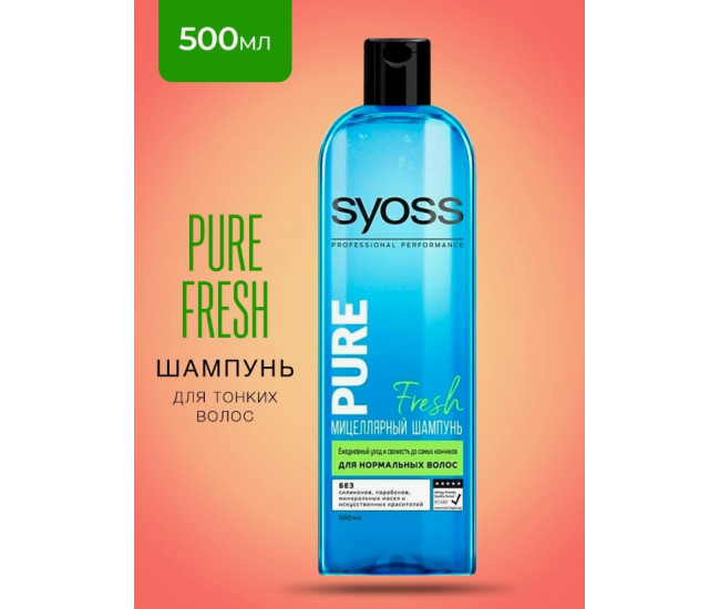 | Наименование | Шампунь "Сйосс" 500мл PURE Fresh для нормальных волос*12 6431 |