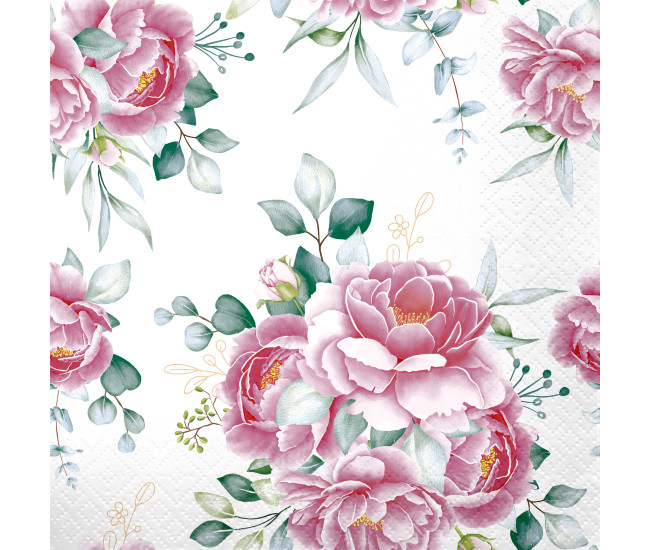 Салфетки PERO PRESTIGE "Розовый букет" 33*33 3 слоя 20 лист *12 3972