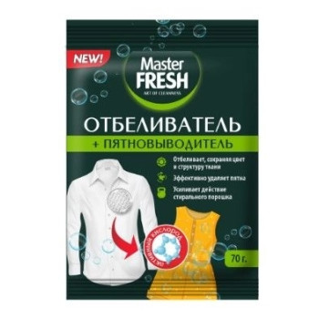 Наименование Отбеливатель/пятновыводитель Master FRESH кислородный 70г *20 6733