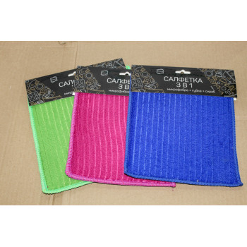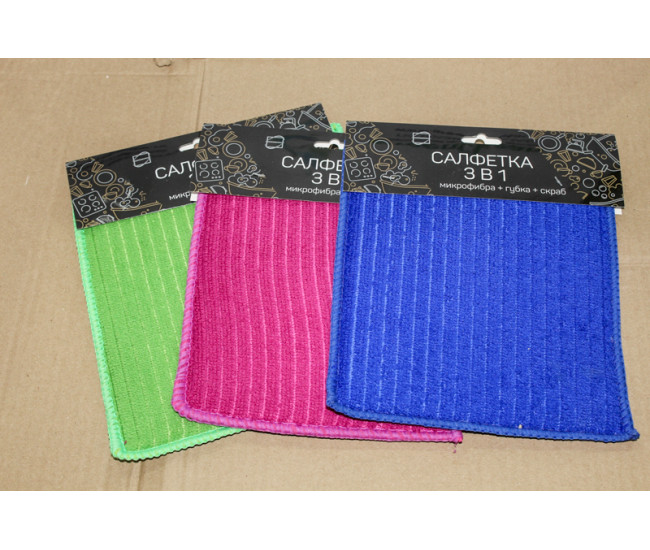 Салфетка микрофибра 16*19см 3 в 1 (микрофибра+губка+скраб) КонтинентПак 4957