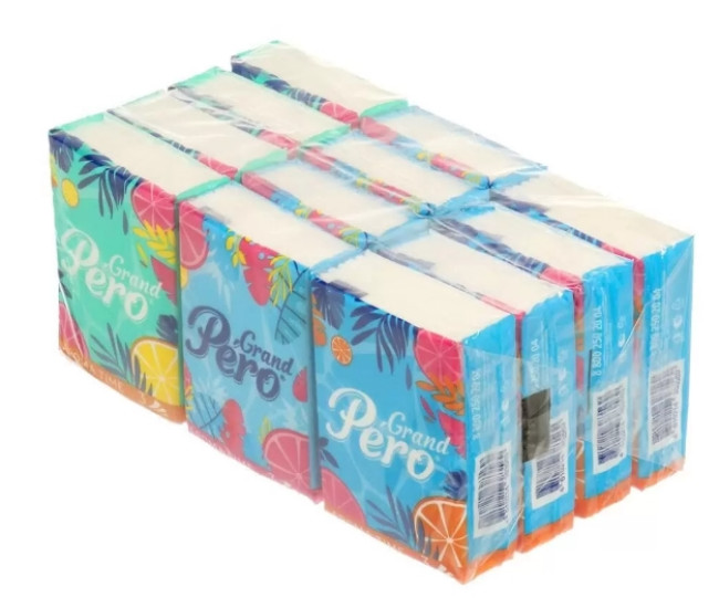 Платочки бумажные GRAND PERO AROMA 3 слоя 7 лист 20*20 (прод по12)*144 3569