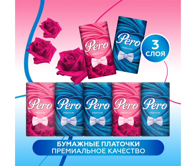 Платочки бумажные PERO 3 слоя 10 лист 20*20 (прод по 10) 0384