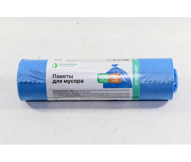 Мешки д/мусора GREEN CLEAN 180л/10шт "STANDART" 30мкм синие *18 0224