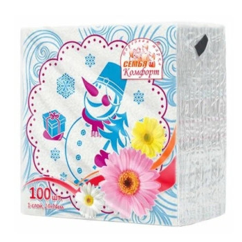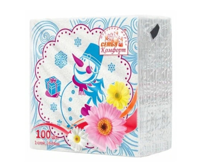 Салфетка стол "Семья и Комфорт" 1сл 100шт НовГод Снеговик (24*24)*48