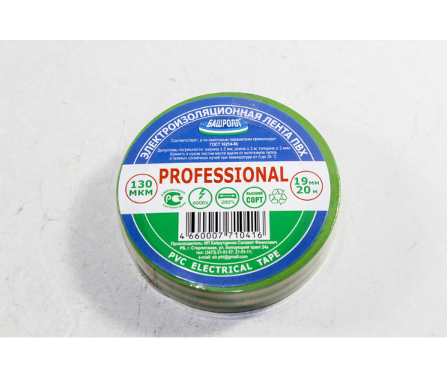 Изолента ПВХ 19/20 Профессиональная желто-зеленая*100
