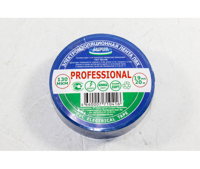 Наименование Изолента ПВХ 19/20 Профессиональная синяя*100