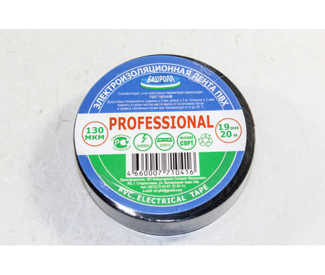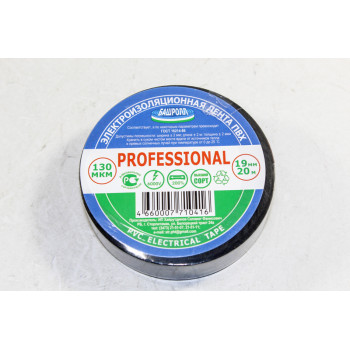 Наименование Изолента ПВХ 19/20 Профессиональная черная*100