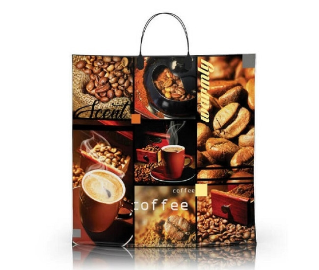 Пакет с пластиковой ручкой 40*40 Чашка кофе (прод.по 10)*100