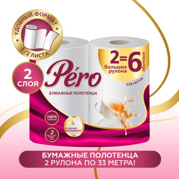 Наименование Полотенца бумажные PERO 2=6 2 слоя 2 рулон 33 м белый *12 7311