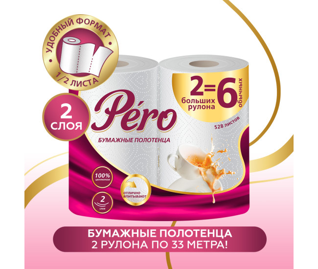 Полотенца бумажные PERO 2=6 2 слоя 2 рулон 33 м белый *12 7311
