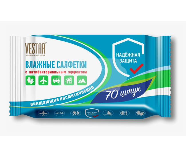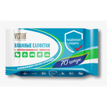Влажные салфетки 70шт Vestar очищающие с антибак эффектом/24 2059
