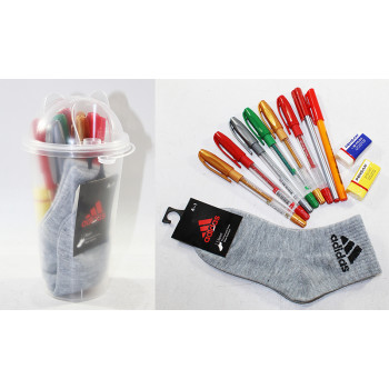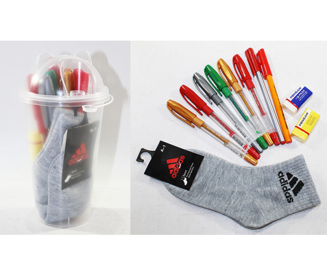| Наименование | Набор подарочный д/мальчика в стакане Ушки (ручки цв,2 ластика,носок 5-8лет) Без этикетки |