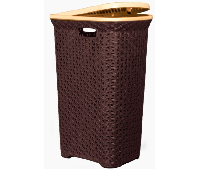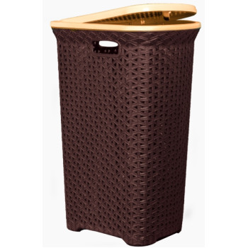 Корзина д/белья "Плетенка" 55л угловая с крышкой (Шоколадный) 2155