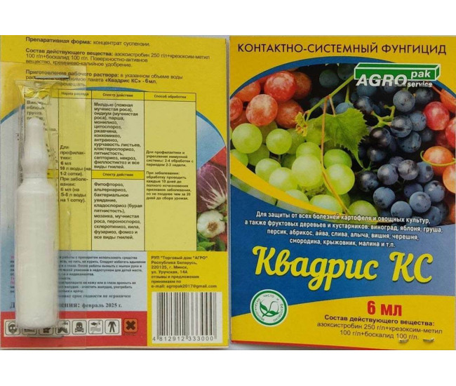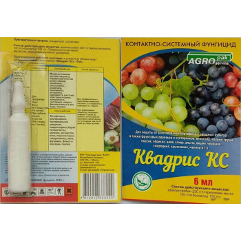 | Наименование | Квадрис КС от милдью,гнили,парши,фитофтороза,муч росы (на 10л) 6 мл*100 3000 |