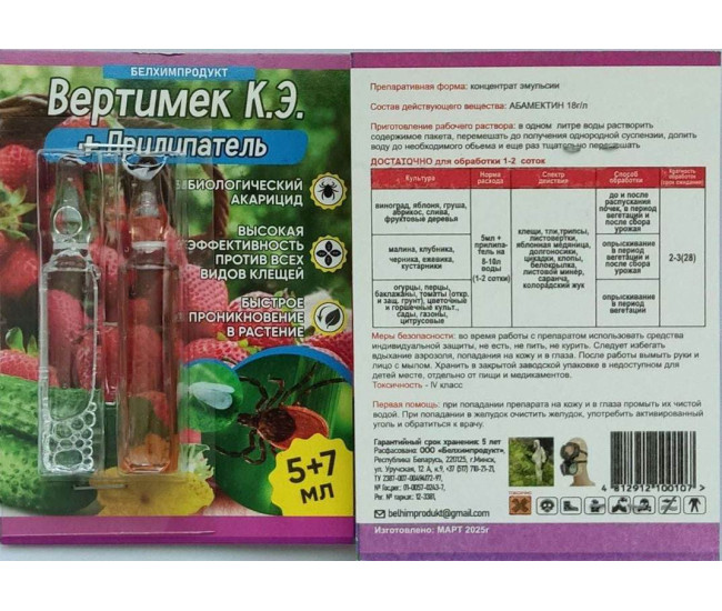 | Наименование | Вермитек+прилипатель от паут клещ,белокрыл,колор жук,тля,медянница и т д 5мл/7мл*75 0107 |