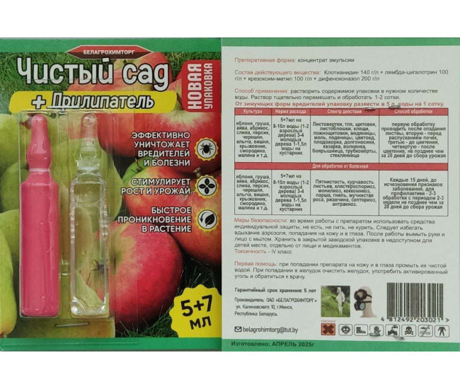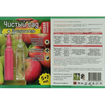 | Наименование | Чистый сад + прилипатель от вредителей и болезней 5мл/7мл*75 3021 |