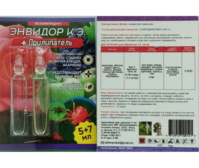 Наименование Энвидор+прилипатель от клещей на сад и комн растениях 5мл/7мл*75 0121