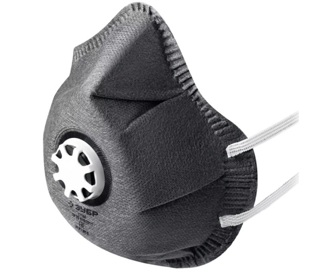 Полумаска фильтрующая с клап выдоха ЗУБР ФГ-80 уголь слой плоск кл защиты FFP1 11168 *10*100 5132