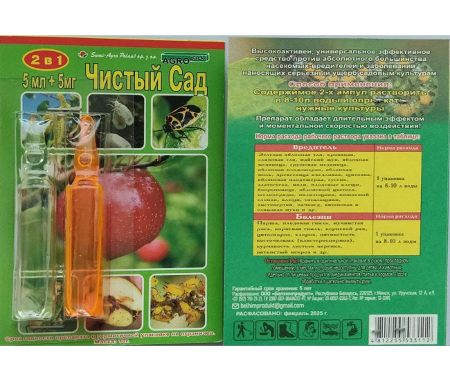 | Наименование | Чистый сад от вредителей и болезней 5 г/5мл*75 3112 |