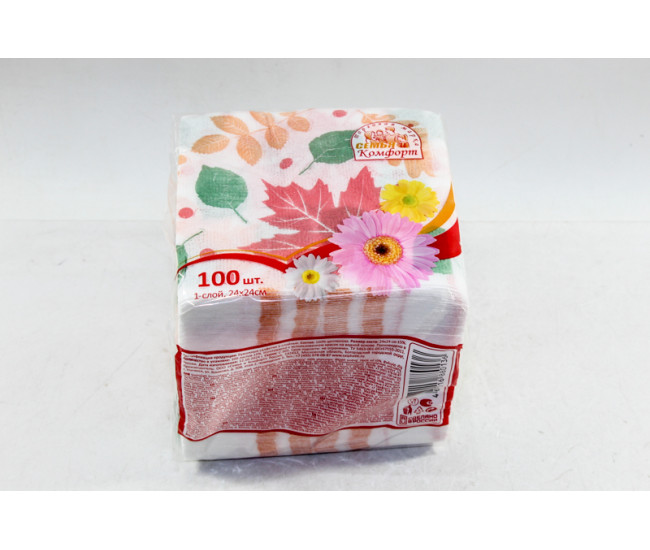 Салфетка стол "Семья и Комфорт" 1сл 100шт Лист (24*24)*48 1479/0136