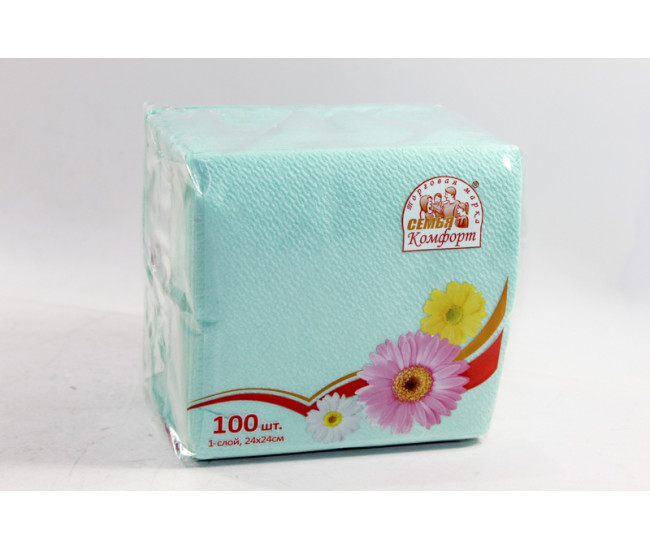 Салфетка стол "Семья и Комфорт" 1сл 100шт Зеленые (24*24)*48 0129/3313