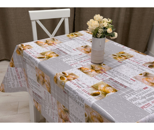Клеенка столовая Mirror ткан. основа 1,4*20м PW-1239А Кофе и круассан 7789