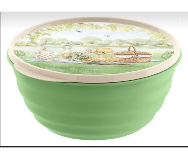 Миска "Latina" 2,1л с крышкой с декором зеленый*18 0134 РО