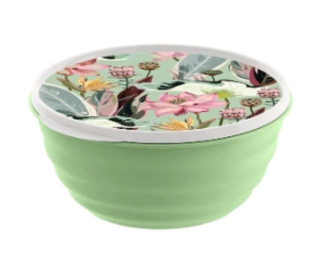 Миска "Latina" 3,2л с крышкой с декором (зеленый) *15 8797