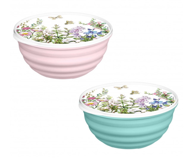 Миска "Latina" 3,2л с крышкой с декором "Цветущий луг" (микс) *15 4026 РО