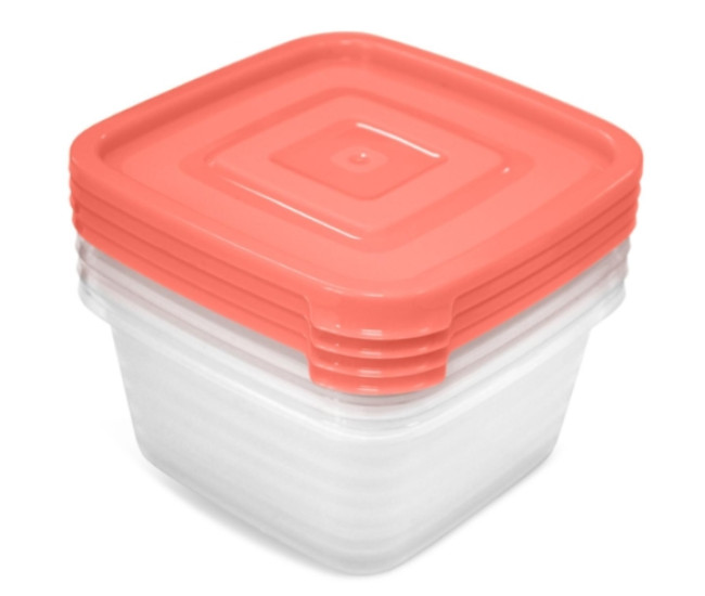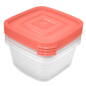 Набор контейнеров д/продуктов (СВЧ) "Унико" квадрат. 4шт 0,45л коралл С216*18 5187