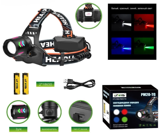 Наименование Фонарь налобный HT-3186-PM20-TG 1863