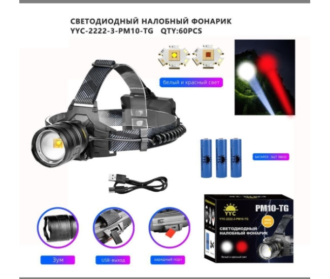 Фонарь налобный MN-2222-3-PM10-TG 2235