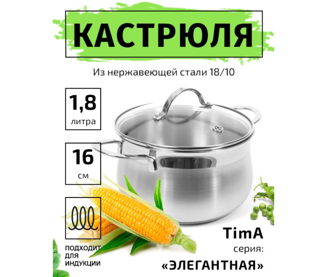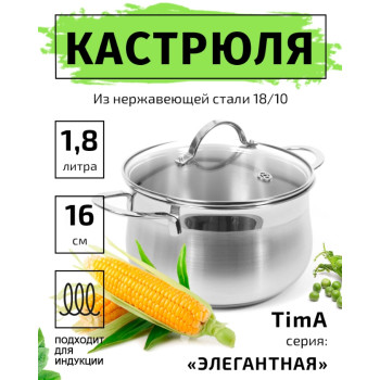 Кастрюля TimA Элегантная 1,8л 0,6мм с крышкой инд. дно Э-1618*8 8724