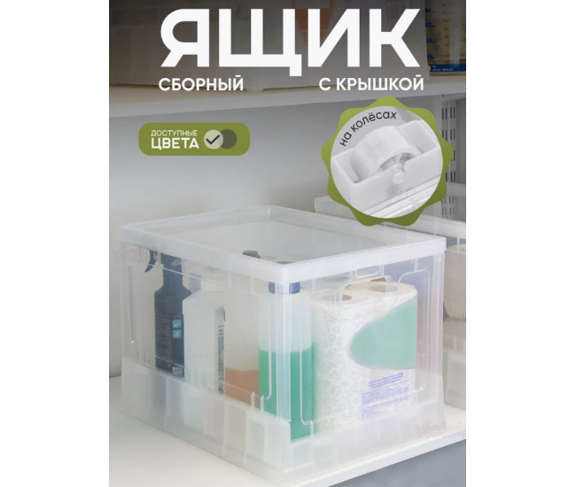 Наименование Ящик складной на колесах с крышкой прозрачный *5 35л В31,2*Д43,5*Г33,5 см 6255