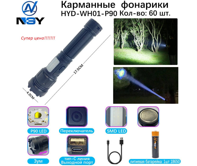 Наименование Фонарь ручной WH-01-P90 0741 (шт.) $