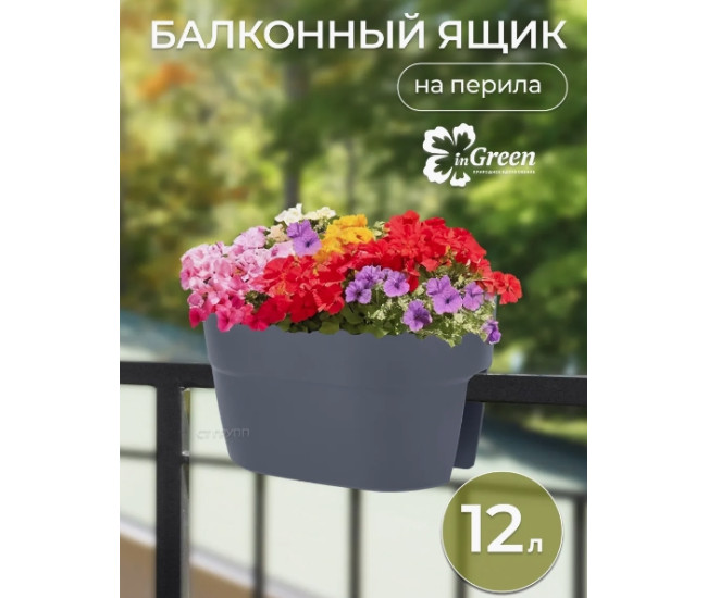 Наименование Ящик балконный на перила InGreen двустор.40 см,12л (разъем 5 и 7 см) фиксаторы вулк.серый*8 1307