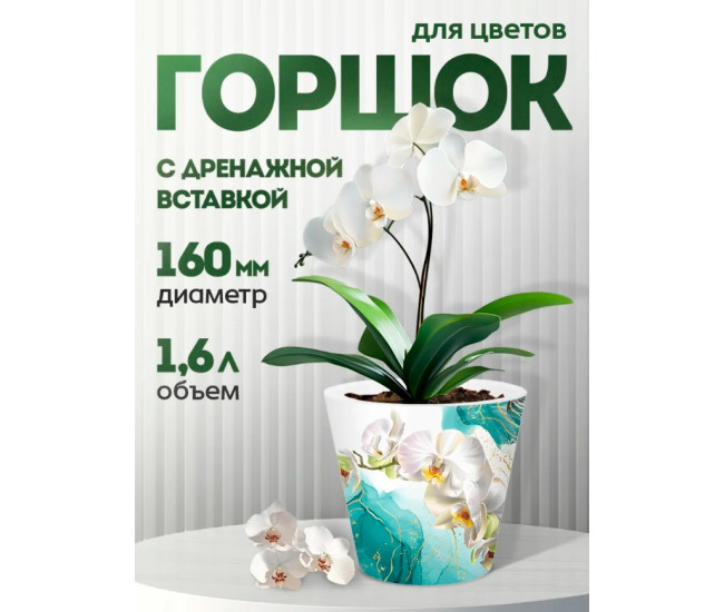 | Наименование | Горшок д/цветов InGreen London Orhid Deco 160мм, 1.6л с дренаж.вставкой голубая орхидея *16 2137 |