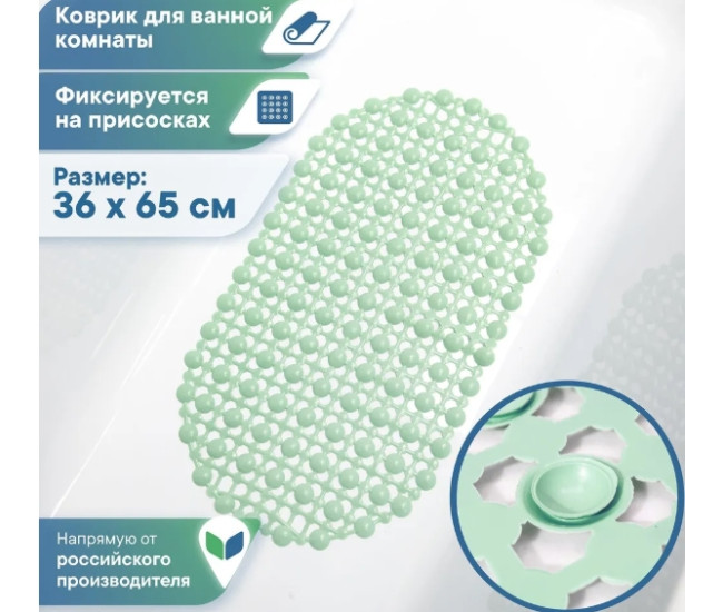 Коврик д/ванной "Комфорт" 36х65см дым.-зел.(на крючке) *20 7658