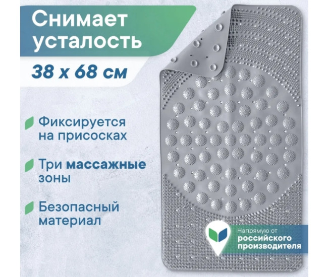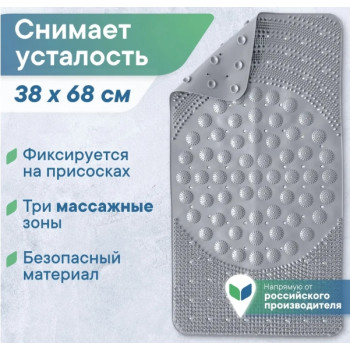 Коврик д/ванной "Массажный" 38х69см белый*10 8206