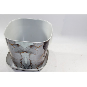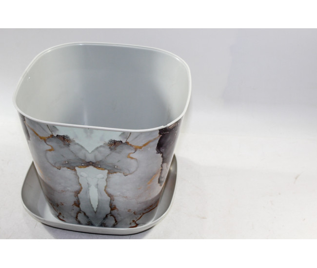 Кашпо д/цветов квадратное Мрамор 3,7л с поддоном (Светло-серый)*18 2321