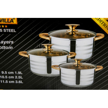 Набор кастрюль 6пр (1,9/3,4/5,8л) 5сл/дно индукц золото W2003 0631