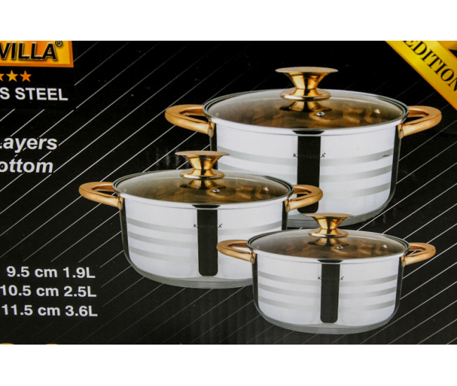 Набор кастрюль 3пр (2,1/3,9/6,5л) KV-6651 6514