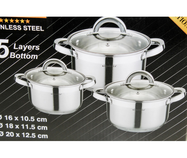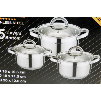 Набор кастрюль 6пр (2,1/2,9/3,9л) 5сл/дно индукц KV-2240 2404