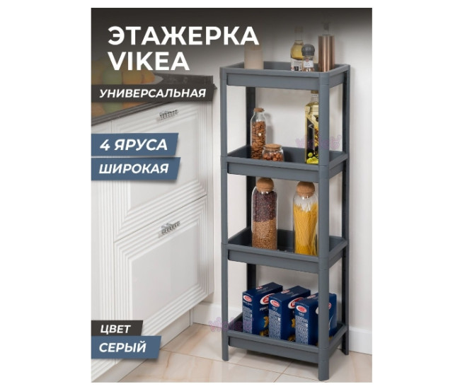 | Наименование | Этажерка VIKEA широкая 4 яруса серый 390*234*1007 мм 8163 УЦЕНКА!!! |