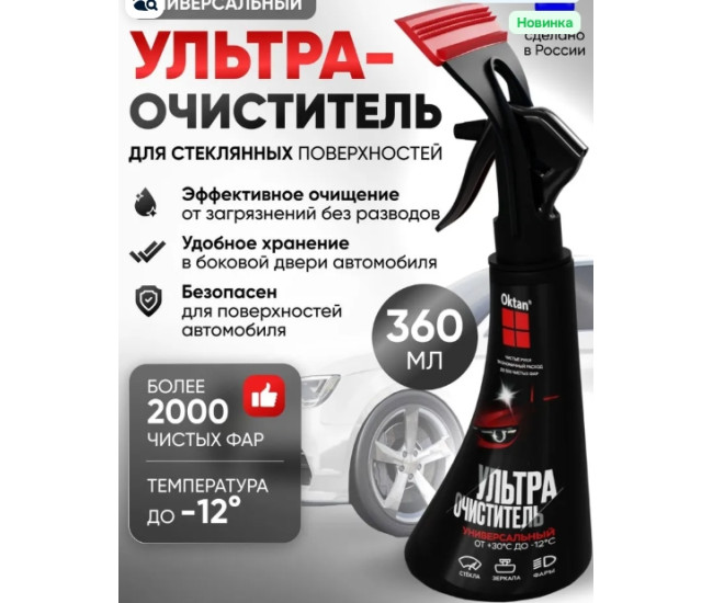 | Наименование | Ультраочиститель для стекл пов Oktan с водосгоном "Универсальный" 360мл (черный)*16 0798 |
