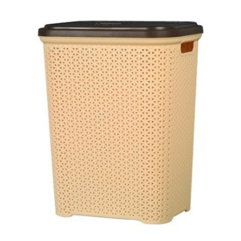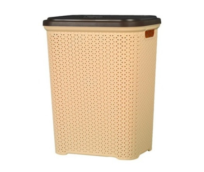 Корзина д/белья "Плетенка" 55л прямоугольная с крышкой (Бежевый) 1714