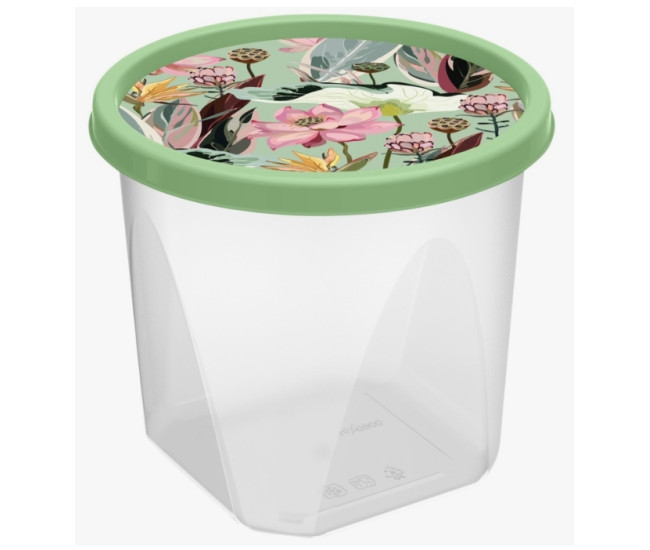 Контейнер д/продуктов с декором круглый, 1л с декором (зеленый)*18 8728